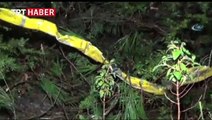 Ormanlık alana düşen Suriye uçağına ait enkaz görüntülendi