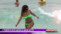 Ocak ayında yazdan kalma günlerin yaşandığı Antalya'da kısıtlamadan muaf turistler, denizin ve sıcak havanın keyfini sürdü. Kentte hava ve deniz suyu sıcaklığı 20 derece ölçüldü.