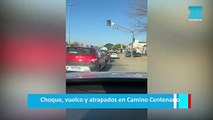 Choque, vuelco y atrapados en Camino Centenario
