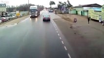 Un camionneur fou tente un dépassement par la droite