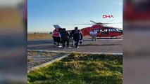Van'ın Gevaş ilçesinde yüksekten düşen 61 yaşındaki İsa Metin, yolun kar nedeniyle kapalı olması nedeniyle ambulans helikopterle hastaneye ulaştırıldı.