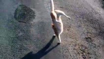 Amazing cat walking on its front legs