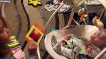 These brothers taught their sister to ride a snowboard. They built a small snow ramp in the backyard to practice hitting rails. The boys helped their sister in riding the snowboard repeatedly until she was able to do it alone. They do a small victory dance as the girl successfully slid down the ramp.