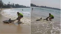 Heroic Citizens Try to Push Beached Whale Shark Back into the Water!