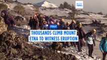 Thousands of hikers climb Sicily's Mount Etna to witness eruption