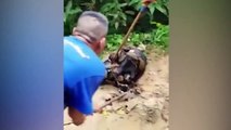 Villager Desperately Try To Save Dog From Giant Python