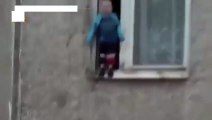Amazing OMG Russian Toddler Balances Weight On The Ledge Of An Eighth Floor Window