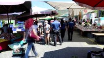( SAKARYA )- Satış yaparken HES kodunun yazdığı kartonu boynuna asıyor- Pazarcı Erhan Kukuloğlu:- "Pazar yerinde bu şekilde boynuma asıyorum, diğer günlerde de aracıma asıyorum uygulamalarda direkt onu gösteriyorum” SAKARYA