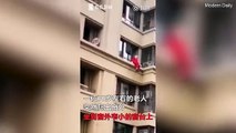 Nail-biting moment toddler walks on balcony ledge three storeys up