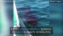 Una salida en barco en Port Victoria (Sur de Australia) acabó en susto cuando este tiburón blanco de 5 metros apareció de la nada y rodeó el barco durante 20 minutos. Finalmente, se fue sin mostrarse agresivo.