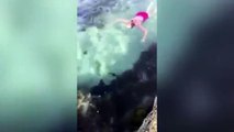 Los turistas se congregaron, impresionados, junto a Jordan Chalutowski, cuando le vieron tirar de la cola de un tiburó