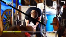 Guy Performs Impressive Handstand Push-ups While Balancing On Two Bottles After Multiple Fails