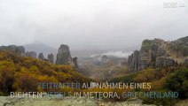 Die Meteorologin Minh Phan reiste durch Griechenland, als sie diesen magischen Moment filmte. Ein dichten Nebel umgibt eine Felsformation in Meteora, die sechs Klöster beherbergt. Schöne und geheimnisvolle Bilder!