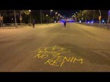 Tensió dels antimonàrquics davant el cordó policial que els separa del Palau de Congressos