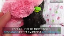 Este filhote de morcego se perdeu da mãe e foi resgatado em Queensland, na Austrália. Graças aos socorristas, ele está se recuperando e até já aumentou de peso.
