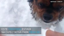 Cão é iludido pelo dono ao tentar pegar bolas de neve