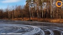 Ce motard réalise des figures de fou sur un lac gelé