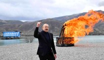 - Azerbaycan Cumhurbaşkanı İlham Aliyev ve eşi Mihriban Aliyeva'nın nevruz ateşini yakması - Azerbaycan Cumhurbaşkanı İlham Aliyev'in konuşmasıAzerbaycan Cumhurbaşkanı İlham Aliyev, Şuşa'da Nevruz ateşini yaktı: - "Bugün, Nevruz'u ülkemizin kültür başkenti Şuşa'da kutluyoruz. Bu, tarihi bir olaydır, büyük bir mutluluktur"BAKÜ (AA) - Azerbaycan Cumhurbaşkanı İlham Aliyev, Ermenistan'ın işgalinden kurtarılan Karabağ'ın sembol şehri Şuşa'da, Nevruz ateşini yaktı.Aliyev, eşi Mihriban Aliyeva ve kızı Leyla Aliyeva ile Şuşa'nın güneyindeki Cıdır Ovası'nda, Nevruz ateşini yaktıktan sonra ulusa seslendi.Nevruz'u bir gün mutlaka Karabağ'da kutlayacaklarını yıllardır söylediğini anımsatan Aliyev, "İşte o gün geldi. Bugün, Nevruz'u ülkemizin kültür başkenti Şuşa'da kutluyoruz. Bu, tarihi bir olaydır, büyük bir mutluluktur. Allah, Azerbaycan halkının dualarını işitti." ifadesini kullandı.İlham Aliyev, toprakları kan dökerek aldıklarını vurgulayarak, şehitleri rahmet ve saygıyla andığını dile getirdi.Ermenilerin, işgal döneminde Azerbaycan şehir ve köylerini yıktığını, talan ettiğini vurgulayan Aliyev, Şuşa ve işgalden kurtarılan tüm köy ve şehirleri imar edeceklerini söyledi.