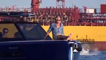 Pablo Nieto junto a su pareja, espera en el barco a su amigo Aitor Ocio