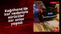 KAĞITHANE'DE KAYGAN YOLDA SÜRÜCÜLER VE VATANDAŞAR ZOR ANLAR YAŞADI (2) (aktüel görüntüler)