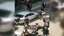 Ankara'da, motosiklet sürücüsü ve arkadaşı ile otomobil sürücüsü ve arkadaşlarının trafikteki kavgası cep telefonuyla görüntülendi.