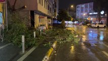 BALIKESİR'in Burhaniye ilçesinde etkili olan kuvvetli rüzgar, Ören Mahallesi'ndeki asırlık sedir ağacını devirdi.