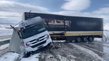 Kontrolden çıkan tır kaza yaptı, askıda kalan dorse yolu ulaşıma kapattı