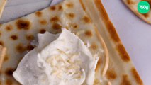 Toute la chaleur de la sauce au poivre tomatée vient bercer les morceaux de poulet snackés. Le fromage en petits bâtonnets est à peine fondu, et apporte encore plus de texture à ce wrap plein de caractère !