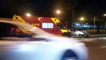 Carro bate em semáforo e passageira fica ferida no Centro de Cascavel