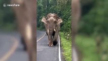 Terrifying moment wild elephant CRUSHES passing car on mountain road in Thailand