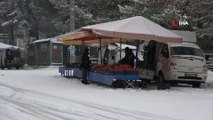 Kentte özellikle yüksek rakımlı bölgelerde etkili olan kar yağışı hayatı olumsuz yönde etkilemeye devam ediyor. Merkeze 50 kilometre uzaklıkta ve 1600 rakımda bulunan Yukarıyongalı köyü sakinleri, güne karla uyandı. Yaklaşık 25 santimetre kar yağışı alan köyde, koyunlara yeniden kar üzerinde yem verildi. Beyaza bürünen köyde kartpostallık manzaralar oluştu.
