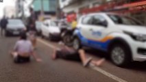 Pneu da moto estoura e casal sofre queda na Rua Paraná