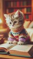 A cat studying for exams