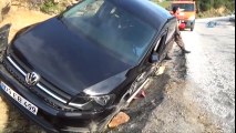 İstanbul Silivri’de kamyonetten fırlayan karton parçası hemen arkasında seyreden bir otomobilin ön camına yapıştı.