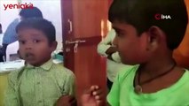 Fırçayı çalan eşeğin kardeşini temizleme görüntüleri izleyenleri gülümsetiyor.