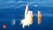 ABD'nin Florida eyaletinde, bir amatör balıkçı, büyük bir balık yakaladığını düşünerek oltasını çekiyor.