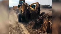 Bu makine ağaçları bir çırpıda kökünden söküyor