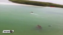 Kanada'nın Ontario şehrinde peşine düşen kurttan akıllıca bir planla kurtulan geyik drone kamerasına böyle yansıdı.