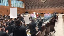 Diputados responden a Chaves con carteles en pleno informe de labores