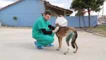 DÜZCE - Düzce'de sokak köpeğine çarpan otomobil sürücüsü, yakında bulunan veteriner kliniğine haber verdi. Klinikte bulunanlar sokak köpeğini sedye ile taşıyarak müdahale etti. Sokak hayvanına müdahale eden Veteriner Hekim Sinem Abanur Aşıkoğlu; "Kazalarda yaralanan sokak hayvanlarının tedavi masraflarını trafik sigortasının karşıladığını söyledi.
