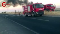 Köpük tabak yüklü TIR'ın dorsesi alev alev yandı