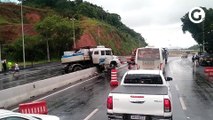 Motor de carro é arrancado após colisão com caminhão; pista ficou completamente interditada