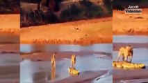 Nehirden geçmek isteyen Aslan ile Timsahın amansız mücadelesi