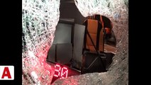 Yolcu otobüsüne taşlı saldırı... Hareket halindeki yolcu otobüsüne atılan kaya parçası muavin koltuğuna saplandı