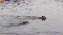 Unbelievable.. A lion mother desperately jumps into a river to save a lion baby from a crocodile