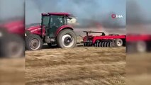 Saman balyalarının üzerinde yolculuk yapan çiftçi virajda yola düştü Eve dönüş yolunda balyaların üzerinde oturan çiftçi virajda balyaların yola savrulması ile traktörden düşerek kaza yaptı.