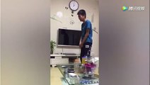 Ông bố dạy con bằng cách tự đánh mình