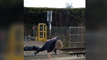 Youth caught on CCTV doing pushups on level crossing