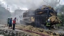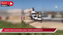 - İtfaiye ekiplerinin saman yüklü tırda çıkan yangını söndürme çalışması - Yanan saman balyaları - Kamyonda meydana gelen hasar Hatay 'da saman yüklü kamyonda çıkan yangın söndürüldüHATAY (AA) - Hatay 'ın Samandağ ilçesinde saman yüklü kamyonda çıkan yangın hasara yol açtı.Mızraklı Mahallesi'nde 31 Y 6158 plakalı saman yüklü kamyonun arka bölümünde seyir halindeyken yangın çıktı.Sürücü, durumu fark edip kamyonu yol kenarına çekti.İhbar üzerine olay yerine yönlendirilen itfaiye ekipleri yangını söndürdü.Saman balyaları yandı, kamyonda hasar oluştu.