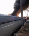 Imágenes hasta el momento del fuego que afecta una fábrica de colchones en La Fe